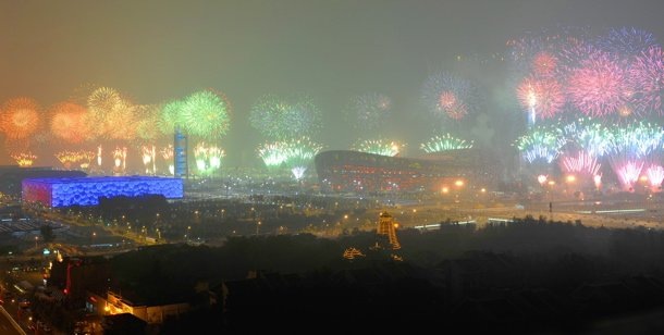 Poate e important sa stiti ca chinezii sunt foarte tari la artificii. La Montreal au participat la un concurs de artificii si ne-au lasat pe toti în cur cu tehnica. Sunt capabili sa lanseze artificii sub forma de inima sau de cub!! M-as abtine sa comentez artificiile de la Olimpiada sub forma „nu aveau cum sa iasa”. Aveau foarte bine cum sa iasa, iar forma aia de pasi de uriasi e nimica toata pt niste pirotehnisti de geniu!