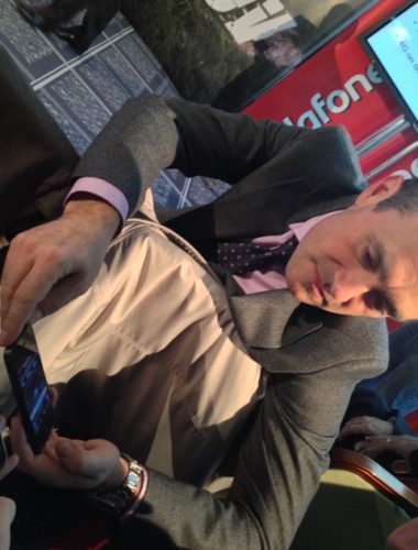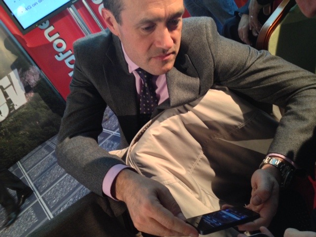 Inaki Berroeta, CEO Vodafone, demonstrându-i unui blogger viteza de download 4G pe un iPhone 5