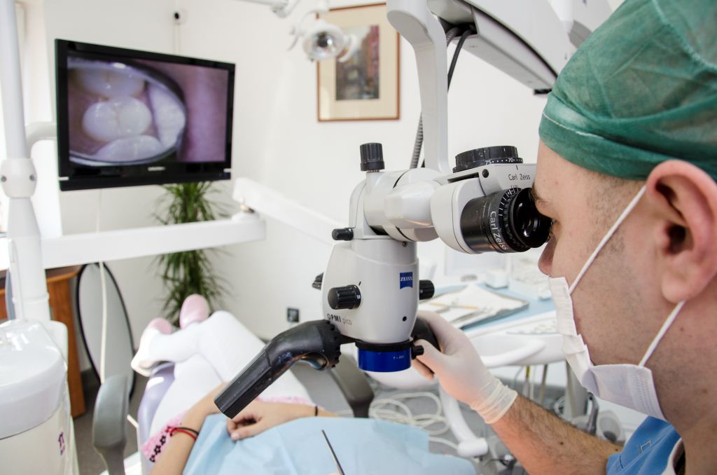 Când doamna doctor a început să lucreze la molarul meu, a făcut-o precum un neurochirurg. A tras deasupra mea un microscop Zeiss special proiectat pentru stomatologie care mărește imaginea dintelui de 25 de ori și poate astfel să vadă în super detaliu situația.