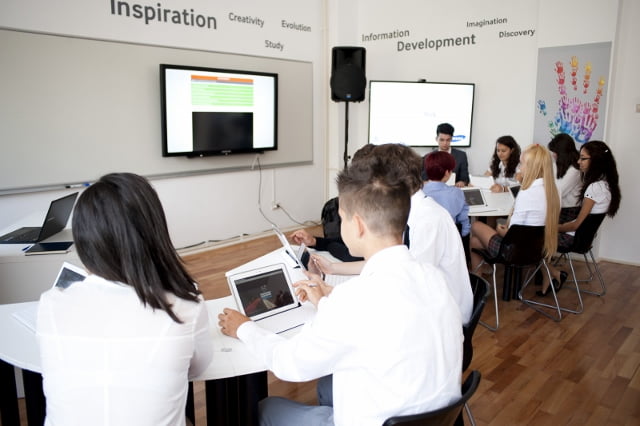 Este o sală de clasă digitală, dotată cu 31 de tablete Samsung Galaxy Note 10.1, un E-Board, un Smart TV și două laptop-uri.