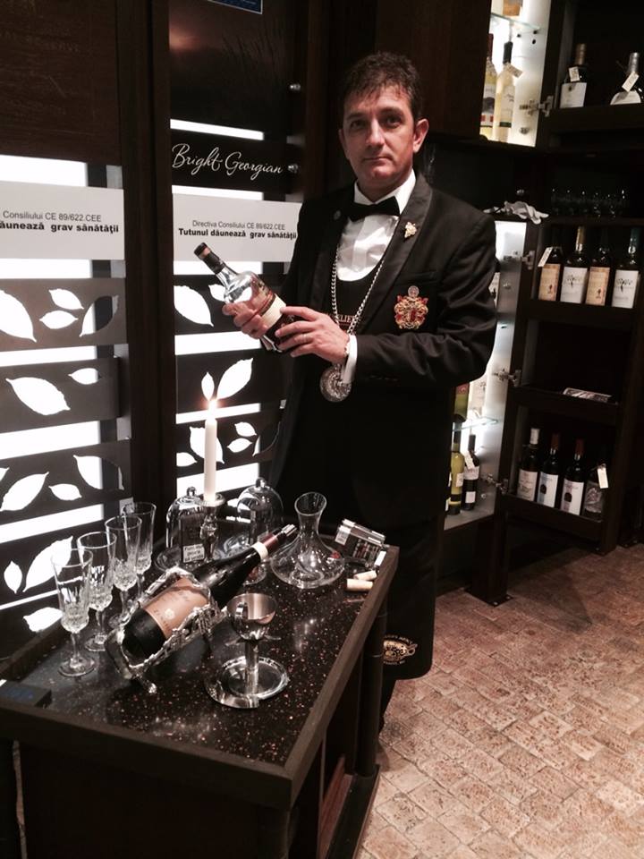Sergiu Nedelea poartă la gât cupa pentru degustat, legată cu un lanț de argint, și are titlul de Ambassadeur de L’Association des Sommeliers d’Europe en Roumanie.