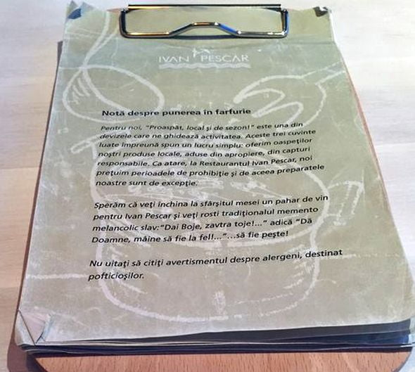 Deși am intrat cu oarece îngrijorare pentru că Ivan Pescar arată ca un restaurant de lux, nota de plată s-a dovedit la final absolut decentă. (Când mă voi întoarce acasă, s-ar putea să mă simt cam jefuit de cârciumarii din București, dacă voi compara ce poți primi de 84 de lei în Capitală față de Tulcea.)