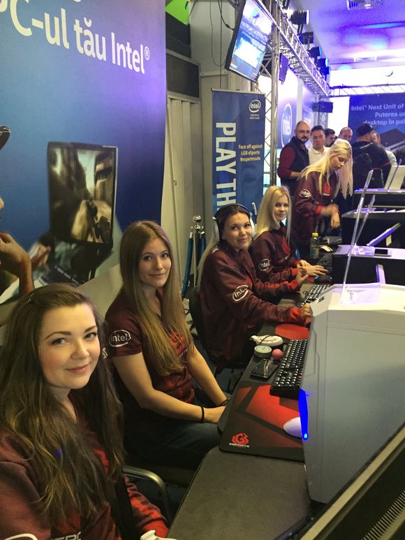 Două echipe de jucătoare, din Suedia și Norvegia, printre cele mai bune din lume, au venit special la Cluj pentru demonstrații, la standul Intel.