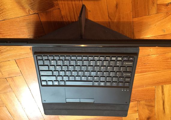Husa funcționează și ca stand pentru tabletă. - Vine cu sistem de operare Windows 10 Home Edition. Cei care lucrează de ani de zile mai ales pe computer vor recunoaște peisajul de pe ecranul tabletei, cu îmbunătățirile aduse de Windows 10, printre care personalizarea meniului de start, în care poți să-ți aranjezi aplicațiile după cum dorești, posibilitatea de a crea mai multe desktop-uri, plus un nou și bun sistem de search prin computer. Cu cont Microsoft, ai la dispoziție și suita Office.