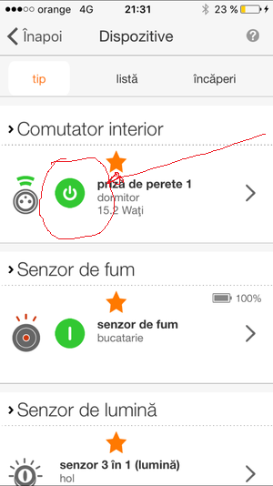 Priza indică și consumul de energie (în captura de pe telefon de sus, eu conectasem o pătură electrică, de aceea apar doar 15,2 W).