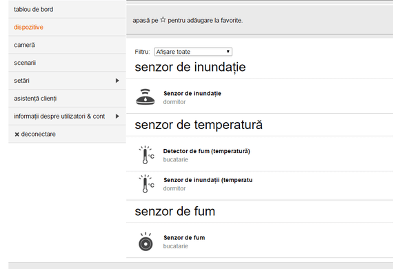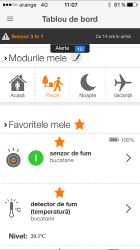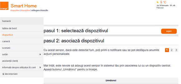 Așa arată platforma Orange Smart Home prin care instalezi și administrezi senzorii. Nu e nimic complicat: