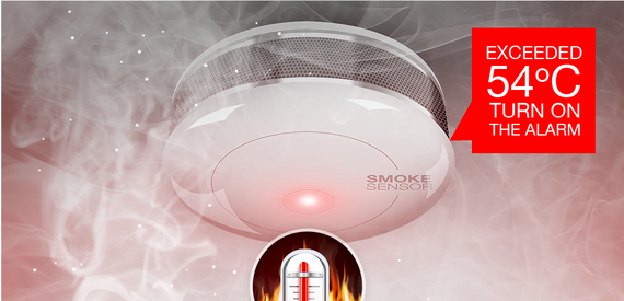 Are și senzor de temperatură, complementar, pentru că unele materiale ard fără mult fum: