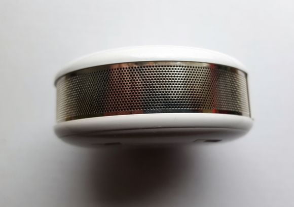 Așa arată detectorul de fum din kit-ul Orange Smart Home, vedere față și lateral: