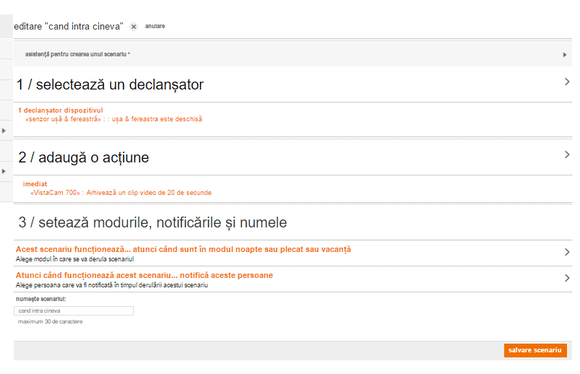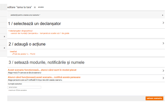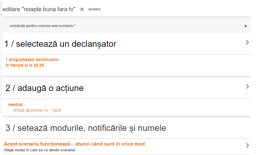 Mai departe am imaginat câteva scenarii funcționale pentru casa mea pe care le-am creat de asemenea foarte ușor, din câteva clickuri și pe care pot să le modific când vreau în câteva secunde: