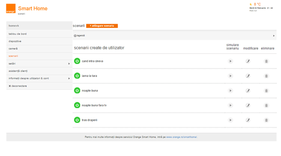 Interfața web de administrare a sistemului Casă inteligentă de la Orange (smartphone, tabletă, computer, iOS și Android) este logică și intuitivă.