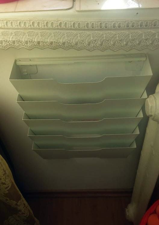 Daniela a rezolvat problema desenelor răspândite prin toată casa (fiul ei are patru ani) printr-un organizator IKEA prins de perete, în care pot fi ordonate operele de artă ale puștiului și cărțile de colorat.