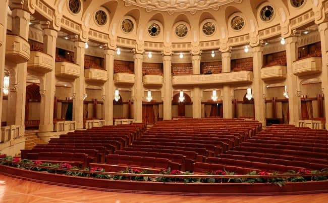 Palatul Parlamentului (Casa Poporului). Teatru privat comandat de Nicolae Ceaușescu. În cei 30 de ani nu a fost folosit niciodată, din cauza accesului dificil.