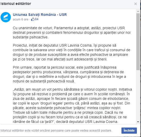 Scandalul zilei de ieri pe Facebook: USR a inițiat un proiect de lege care prevede închisoarea pentru posesie droguri de risc, aka marijuana, destinate consumului propriu.
